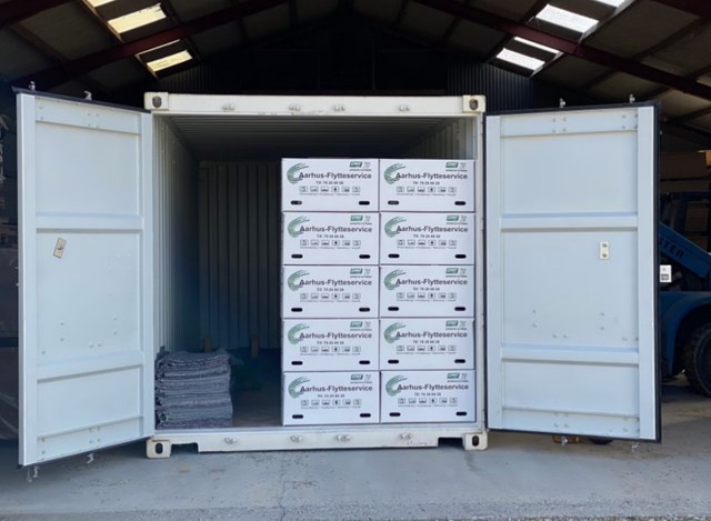 Flyttegodset pakkes professionelt og forsvarligt én gang i containeren og kommer først ud igen, når du ønsker det leveret på din nye adresse.