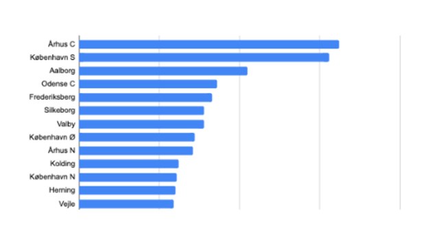 Hvis vi tager et kig på den fulde liste fra undersøgelsen, så kan det også ses, at Aarhus C ligger på 1. pladsen.