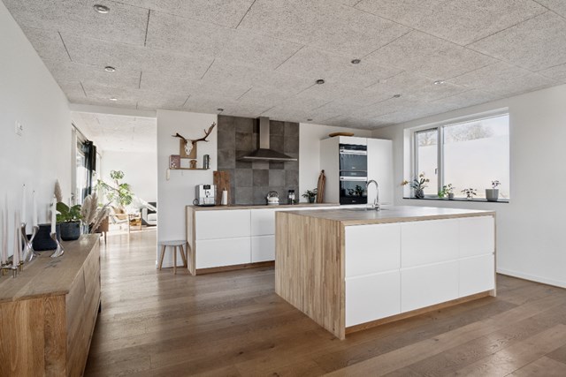 I går en komfortabel fremtid i møde inde såvel som ude, da alt fra A-Z er renoveret i 2019. Resultatet er en gennemført æstetik, som Troldtekt-loftet blandt andet er et stjerneeksempel på. Der er også komplet ny el- og VVS-installation, så I med andre ord kan læne jer tilbage med visheden om, at der er styr på det hele.